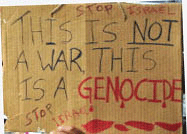 What are people supposed to make of signs like “Stop Massacre of Palestinian People”? Is this command directed at Israel or Stephen Harper!? If so, it’s laughably futile, and futility is not exactly a great recruiting tool. “Free Palestine: end Israeli Occupation/Apartheid”—at best this is wishful thinking, and who is it meant for? “Self-determination for Palestine”? This is leaden Marxist cant and does nothing to engage outsiders.