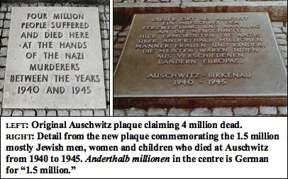 BOYLE: “I understand that the trial moves to Auschwitz to address Irving’s claim there were no gas chambers. What was Irving’s evidence?” KALE: “Essentially the lack of evidence. The Nazis allegedly dropped Zyklon B pellets through rooftop openings in the buildings, but no such openings existed. Irving’s catchphrase was ‘No holes; no holocaust.’ By casting doubt on the existence of the gas chambers, Irving cast doubt on the 6 million, so the existence of gas chambers had to be defended. BOYLE: “How do we know they didn’t exist?” KALE: “Dr. Franciszek Piper, the senior curator and director of archives of the Auschwitz State Museum, admitted it! In a videotaped 1992 interview with journalist David Cole, he said no gassings of human beings took place at Auschwitz. The rooftop holes were added after the war by the Soviet Union for propaganda purposes. If you'll look at the monitor, you’ll see what I mean. On this score, the filmmakers even committed fraud by showing the audience a putative blueprint of a gas chamber that did include rooftop openings. The scene is so phony and manipulative that it did more to support Irving than discredit him.” BOYLE: “Why the need to falsify the existence of gas chambers, anyway? Surely, the evidence of systemic maltreatment of Jews—as well as gypsies, homosexuals and communists—was enough to justify the need for a Jewish state.” KALE: “On the contrary—the gas chambers are essential. Auschwitz is the holiest shrine of the Holocaust®, and Israel is built on the ashes of the ‘6 million,’ figuratively speaking of course.” BOYLE: “Why figuratively?” KALE: “The idea that 6 million Jews were killed under the Nazi regime is preposterous, but since it is the founding lie of Israel and the cult of the Holocaust®, the number must be insulated from criticism lest the myth of Israel as the necessary sanctuary for Jews collapse.” BOYLE: “But how do you know the 6 million figure is a lie?” KALE: “Because there is no evidence for it. For example, the International Red Cross could only account for 271,301 deaths in all camps. There have been dozens upon dozens of occurrences of ‘6 million’ pertaining to dead or persecuted Jews going back at least to the beginning of the 20th century. If you'll look at the monitor again, I'll show you some examples. The first is in a New York Times article comes from Nov. 1, 1905. It tells of 6,000,000 Jewish families being expelled from Russia between 1890 and 1902. BOYLE: “Families?!” If the average family size was 3 people, that’s 18 million!” KALE: “It gets better. This one from the Jewish Criterion of Pittsburgh on Aug. 4, 1916, speaks of 6,000,000 Russian Jews struggling for their civil rights. It also said the figure was half the Jewish race.” BOYLE: “I didn't know Jews constituted a race.” KALE: “They don’t, but what matters is that we are told that the total number of Jews is 12 million, but this is impossible if 18 million or so were expelled 12 years earlier! On Sept. 8, 1919, the Times again runs a ‘6 million’ story, this time about Ukrainian and Polish Jews. What are we up to already—24 million? In all, there were more than 250 mentions of ‘6 million’ Jews in various publications before the Nuremberg Trials. BOYLE: “The media creates suffering Jews as easily as modern banks create electronic money today—out of thin air!” KALE: (They both laugh briefly) “My last example, also from the Times, dates to June 10, 1900! It’s my favourite because it is one of the earliest if not the earliest mentions and proves that “6 million” never had anything to do with Hitler or gas chambers. On this day, Rabbi Stephen Wise addressed a meeting of the Federation of American Zionists and uttered this candid admission: ‘There are 6,000,000 living, bleeding, suffering arguments in favour of Zionism.’ “Let that sink in for a moment: ‘in favour of Zionism.’ From the outset, Wise directly linked the suffering of an imaginary 6 million Jews to the creation of a future Israel. The corollary to this statement is, of course, devastating. Because the 6 million had been invented 45 years before the end of World War II, the official number of Jews who died at Auschwitz and other concentration camps had to be fabricated to conform to the preexisting propaganda. That means there could not have been any gas chambers. Irving was right—there was no Holocaust® and all Denial did was confirm that fact.” BOYLE: “If the 6,000,000 is a lie, where does it come from? It had to come from somewhere because the number is repeated over and over like a mantra.” KALE: “The word mantra is apt. Though no definitive source has been found for the number, there is a prophecy in the Torah that states that before Jews are allowed to reclaim Palestine, 6 million of them had to be burned to death as a human sacrifice to their god Yahweh.” BOYLE: (visibly shaken) “Good God!” KALE: “ ‘Good’ would not be my word of choice, but I appreciate the emotion. I have one final image, Lance. Even if we ignore the absurdity of the 6 million, Denial is guilty of lying by omission. In June 1992, the Polish government officially lowered the number of estimated dead at Auschwitz–Birkenau from 4 million to 1.5 million. Nowhere does this emendation appear in the film or in any Holocaust® propaganda.” BOYLE: “Why not? KALE: “I’m glad you asked. Even the slight accommodation with criticism would open up the floodgates of rational enquiry. Any proper investigation of Jews in the 1930s and ’40s would show that their numbers increased over the period of Hitler’s régime. According to the Jewish World Almanac, the worldwide number of Jews in 1933 stood at 15.315 million and in 1948 was 15.753 million. The American Jewish Committee is the source for the 1933 number. Clearly the Holocaust® belongs to the realm of fiction and religion not fact and history.”