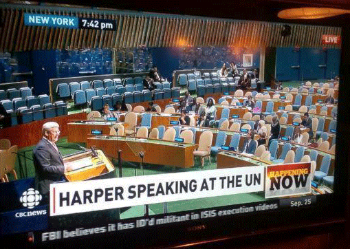 | This was the scene in the UN General Assembly on Sept. 25, 2014, when the civilized world showed in what contempt it held Canada. |