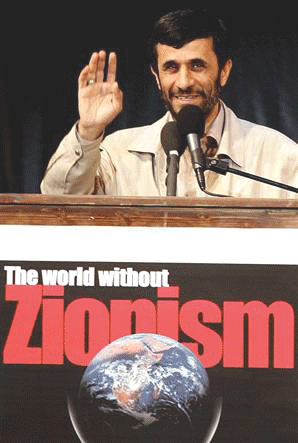 RIGHT: Iranian President Mahmoud Ahmadinejad hosted a conference to investigate zionist claims about the Nazi holocaust. He and everyone who attended it were slandered and libeled as “Holocaust Deniers,” because a scholarly historical attempt to understand what happened highlights Israel’s criminality and illegitimacy. |