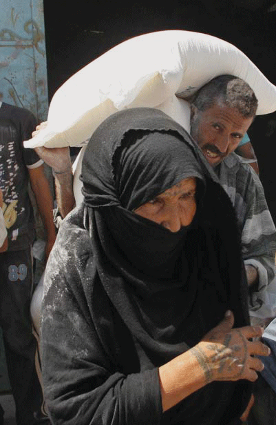 These refugees collecting UN food aid in the city of Rafah attest to the malnutrition and unemployment caused by Isramerica’s deliberate economic suffocation of Gaza.
