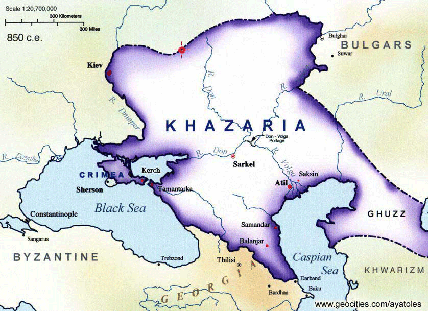For those of you new to the subject, here’s a quick history: The Khazars, a Turko-Finnic people, migrated out of the Caucasus in the second century.Their kingdom, Khazaria, became one of the most powerful trading powers of the first millennium and at its height reached from Georgia to Ukraine. In AD 740, the khagan (king) of Khazaria decided that paganism wasn’t good enough for his people and decided to adopt one of the “heavenly” religions: Judaism, Christianity or Islam. After a process of elimination he chose Judaism, and from that point it became the official religion.