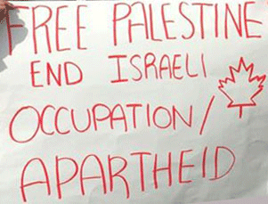 What are people supposed to make of signs like “Stop Massacre of Palestinian People”? Is this command directed at Israel or Stephen Harper!? If so, it’s laughably futile, and futility is not exactly a great recruiting tool. “Free Palestine: end Israeli Occupation/Apartheid”—at best this is wishful thinking, and who is it meant for? “Self-determination for Palestine”? This is leaden Marxist cant and does nothing to engage outsiders.