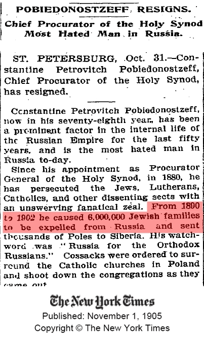 BOYLE: “I understand that the trial moves to Auschwitz to address Irving’s claim there were no gas chambers. What was Irving’s evidence?” KALE: “Essentially the lack of evidence. The Nazis allegedly dropped Zyklon B pellets through rooftop openings in the buildings, but no such openings existed. Irving’s catchphrase was ‘No holes; no holocaust.’ By casting doubt on the existence of the gas chambers, Irving cast doubt on the 6 million, so the existence of gas chambers had to be defended. BOYLE: “How do we know they didn’t exist?” KALE: “Dr. Franciszek Piper, the senior curator and director of archives of the Auschwitz State Museum, admitted it! In a videotaped 1992 interview with journalist David Cole, he said no gassings of human beings took place at Auschwitz. The rooftop holes were added after the war by the Soviet Union for propaganda purposes. If you'll look at the monitor, you’ll see what I mean. On this score, the filmmakers even committed fraud by showing the audience a putative blueprint of a gas chamber that did include rooftop openings. The scene is so phony and manipulative that it did more to support Irving than discredit him.” BOYLE: “Why the need to falsify the existence of gas chambers, anyway? Surely, the evidence of systemic maltreatment of Jews—as well as gypsies, homosexuals and communists—was enough to justify the need for a Jewish state.” KALE: “On the contrary—the gas chambers are essential. Auschwitz is the holiest shrine of the Holocaust®, and Israel is built on the ashes of the ‘6 million,’ figuratively speaking of course.” BOYLE: “Why figuratively?” KALE: “The idea that 6 million Jews were killed under the Nazi regime is preposterous, but since it is the founding lie of Israel and the cult of the Holocaust®, the number must be insulated from criticism lest the myth of Israel as the necessary sanctuary for Jews collapse.” BOYLE: “But how do you know the 6 million figure is a lie?” KALE: “Because there is no evidence for it. For example, the International Red Cross could only account for 271,301 deaths in all camps. There have been dozens upon dozens of occurrences of ‘6 million’ pertaining to dead or persecuted Jews going back at least to the beginning of the 20th century. If you'll look at the monitor again, I'll show you some examples. The first is in a New York Times article comes from Nov. 1, 1905. It tells of 6,000,000 Jewish families being expelled from Russia between 1890 and 1902. BOYLE: “Families?!” If the average family size was 3 people, that’s 18 million!” KALE: “It gets better. This one from the Jewish Criterion of Pittsburgh on Aug. 4, 1916, speaks of 6,000,000 Russian Jews struggling for their civil rights. It also said the figure was half the Jewish race.” BOYLE: “I didn't know Jews constituted a race.” KALE: “They don’t, but what matters is that we are told that the total number of Jews is 12 million, but this is impossible if 18 million or so were expelled 12 years earlier! On Sept. 8, 1919, the Times again runs a ‘6 million’ story, this time about Ukrainian and Polish Jews. What are we up to already—24 million? In all, there were more than 250 mentions of ‘6 million’ Jews in various publications before the Nuremberg Trials. BOYLE: “The media creates suffering Jews as easily as modern banks create electronic money today—out of thin air!” KALE: (They both laugh briefly) “My last example, also from the Times, dates to June 10, 1900! It’s my favourite because it is one of the earliest if not the earliest mentions and proves that “6 million” never had anything to do with Hitler or gas chambers. On this day, Rabbi Stephen Wise addressed a meeting of the Federation of American Zionists and uttered this candid admission: ‘There are 6,000,000 living, bleeding, suffering arguments in favour of Zionism.’ “Let that sink in for a moment: ‘in favour of Zionism.’ From the outset, Wise directly linked the suffering of an imaginary 6 million Jews to the creation of a future Israel. The corollary to this statement is, of course, devastating. Because the 6 million had been invented 45 years before the end of World War II, the official number of Jews who died at Auschwitz and other concentration camps had to be fabricated to conform to the preexisting propaganda. That means there could not have been any gas chambers. Irving was right—there was no Holocaust® and all Denial did was confirm that fact.” BOYLE: “If the 6,000,000 is a lie, where does it come from? It had to come from somewhere because the number is repeated over and over like a mantra.” KALE: “The word mantra is apt. Though no definitive source has been found for the number, there is a prophecy in the Torah that states that before Jews are allowed to reclaim Palestine, 6 million of them had to be burned to death as a human sacrifice to their god Yahweh.” BOYLE: (visibly shaken) “Good God!” KALE: “ ‘Good’ would not be my word of choice, but I appreciate the emotion. I have one final image, Lance. Even if we ignore the absurdity of the 6 million, Denial is guilty of lying by omission. In June 1992, the Polish government officially lowered the number of estimated dead at Auschwitz–Birkenau from 4 million to 1.5 million. Nowhere does this emendation appear in the film or in any Holocaust® propaganda.” BOYLE: “Why not? KALE: “I’m glad you asked. Even the slight accommodation with criticism would open up the floodgates of rational enquiry. Any proper investigation of Jews in the 1930s and ’40s would show that their numbers increased over the period of Hitler’s régime. According to the Jewish World Almanac, the worldwide number of Jews in 1933 stood at 15.315 million and in 1948 was 15.753 million. The American Jewish Committee is the source for the 1933 number. Clearly the Holocaust® belongs to the realm of fiction and religion not fact and history.”